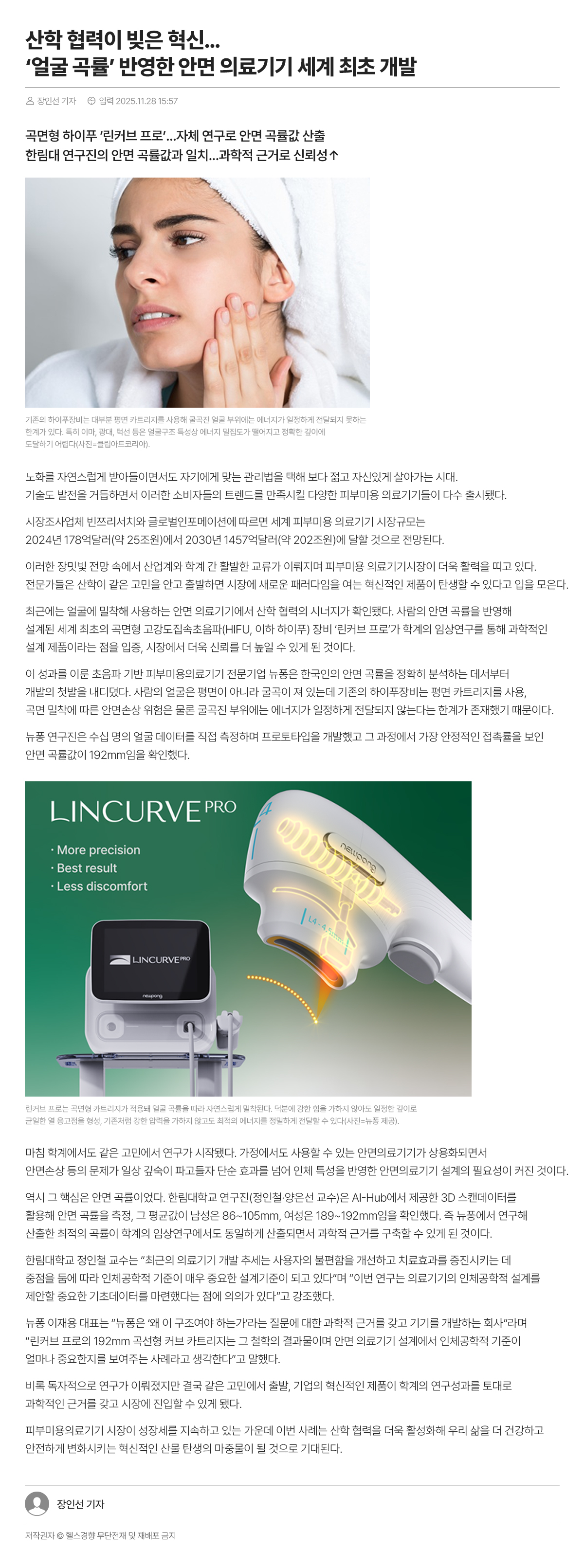세계 최초 곡면형 하이푸 ‘린커브프로’, 국제학회서 임상적 우수성 입증 - 헬스경향 보도자료